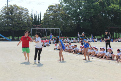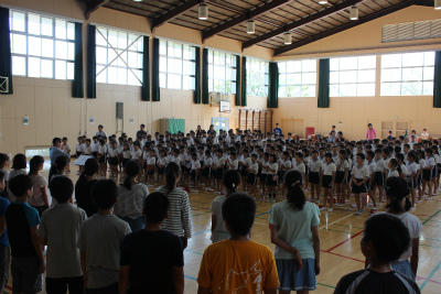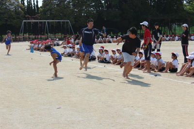 そして、壮行会の最後は、恒例の先生チームとのリレー対決。結果は、男子・女子ともに子どもチームの勝ちでした。