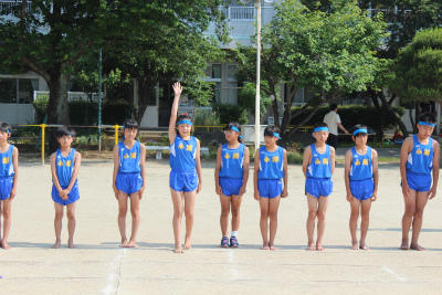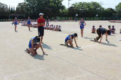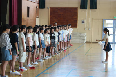 今日の児童朝会は、6月1日に行われる陸上競技大会の壮行会を行いました。