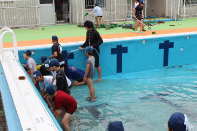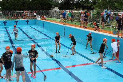 5年生、6年生でプールの清掃を行いました。