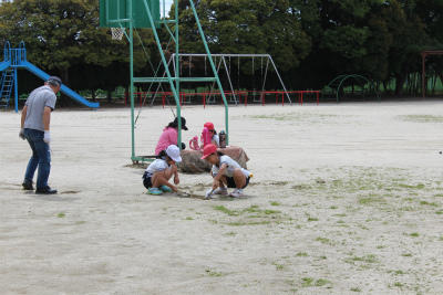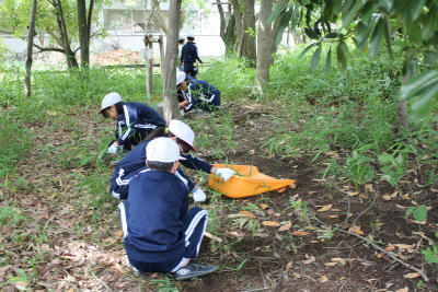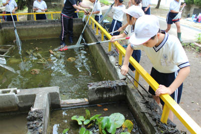 4年生の2クラスで、保健室前にある「観察池」清掃や、「トトロの森」、校庭の草取りと行った愛校活動を行いました。