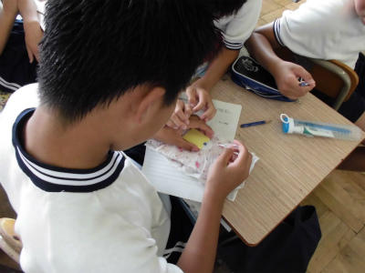 唾液の役割や働きついて学ぶとともに、自分の唾液から口の中の衛生状態を知り(RDテスト)、今後の生活実践に活かします。