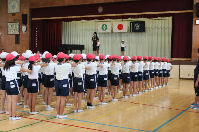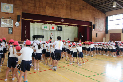 今日のさわやかタイムは、雨天のため体育館で行いました。