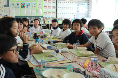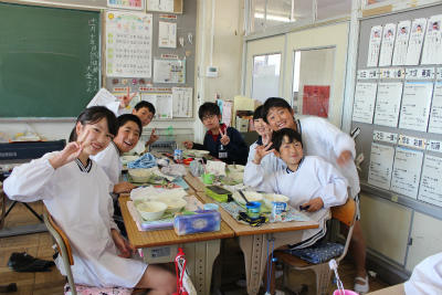 今日の5校時、市内各校の先生方が来校し、橋本先生・中川先生による家庭科の研究授業が行われました。テーマは「くふうしよう おいしい食事」。家族と楽しく食事をするための食事メニューや栄養バランスについて考えました。