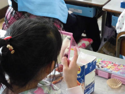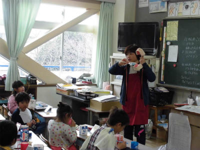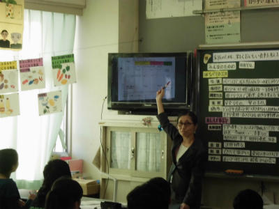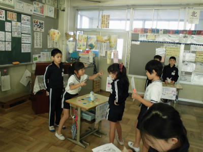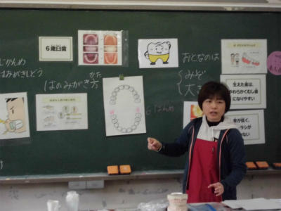 5校時の1年生です。1組は、養護教諭による保健指導で、歯の上手な磨き方を実習しました。「6歳臼歯」の大切さや、その上手な磨き方をテスターを使ったり歯みがきをしたりしながら学習しました。