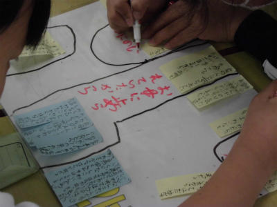 出された意見をもとに、封筒にメッセージを書いたり描いたりしました