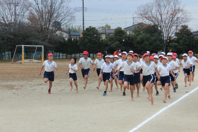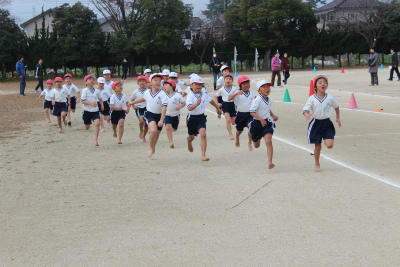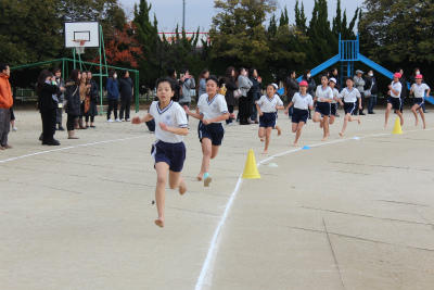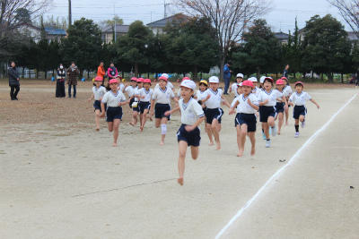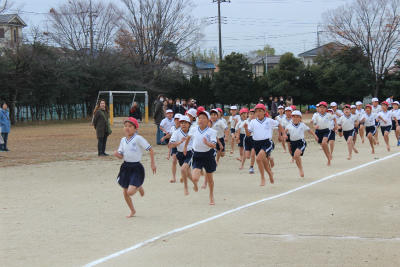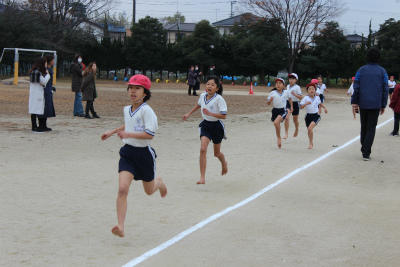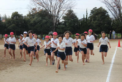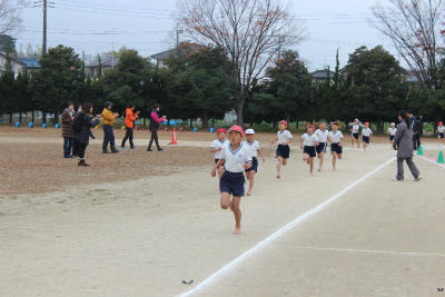 男女別のレース、距離はそれぞれ1年生600m、2年生700m、3・4年生1000m、5・6年生1300mで行いました。初めてとなる1年生から最後になる6年生まで、あきらめることなく最後まで走り抜きました。