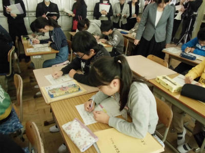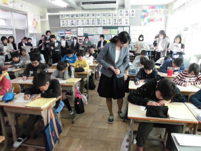 たくさんの先生方に囲まれながら6年1組の子どもたちは緊張気味でしたが、一生懸命課題に取り組んでいました。お疲れ様でした。