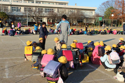 この1か月で気温も随分下がり、夕刻もあっという間に暗くなるようになりました。各先生たちからは、朝の凍結路面に気をつけるようにとか、帰宅後の交通安全などについて指導がありました。