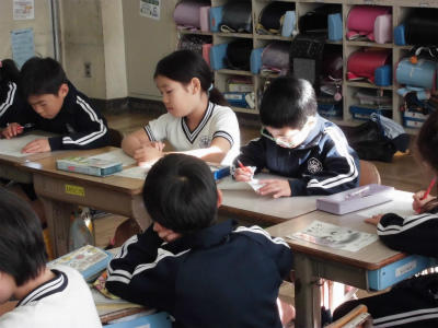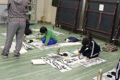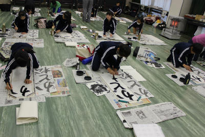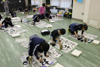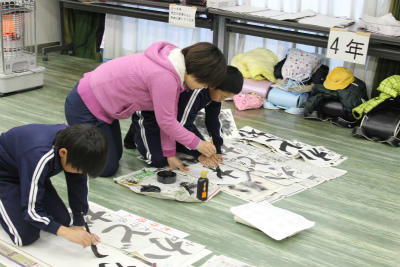 1月の市内書き初め展に向けて、各学年の代表児童が放課後の練習を続けています。