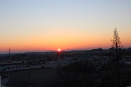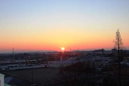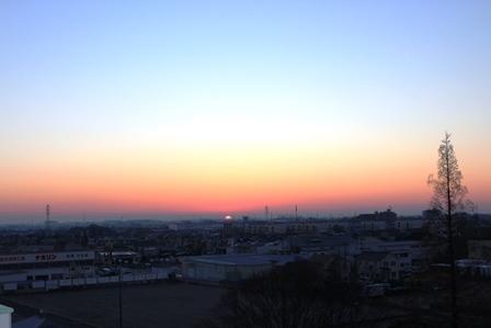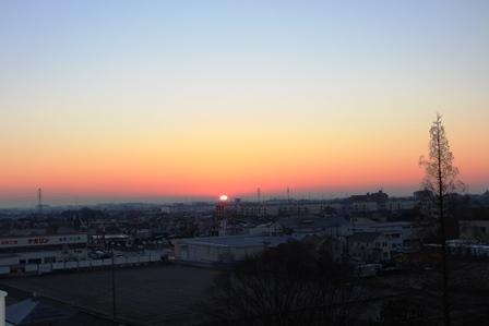 初日の出とシンボルツリーメタセコイヤ 校舎屋上より撮影6:51