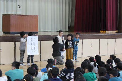 今日の朝、1年生と2年生のお話会(読み聞かせ)がありました。3年生は残念ながら学級閉鎖中で実施できませんでした。