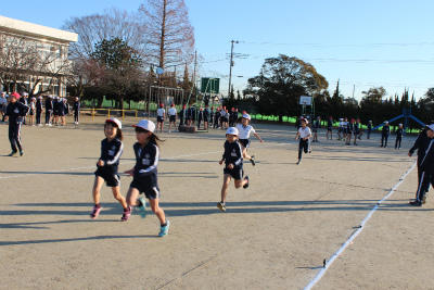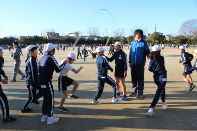 登校後、すぐに校庭へ出て、寒さに負けずに