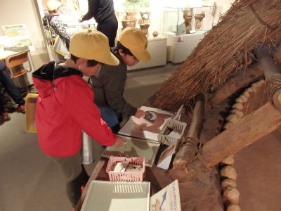 春日部の歴史や竪穴式住居の模型、昔の農機具などを見学しました。指導してくださった教育委員会のみなさん、ありがとうございました。