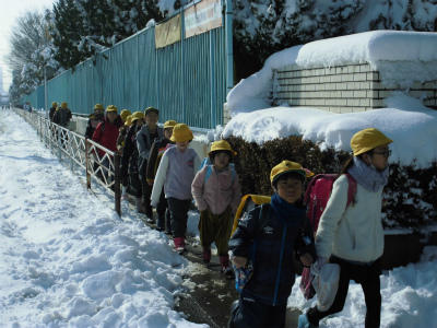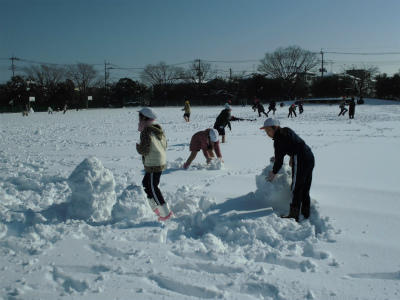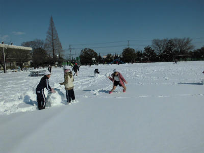 昨日から降り続いた雪も今日未明には止み、朝から快晴です。大人たちには路面の凍結や雪かきなどで悩みの種になる降雪ですが、子どもたちには、またとない雪遊びのチャンスです。小渕っ子たちも外に出てたくさん遊びました。