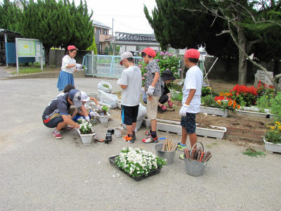 栽培委員会の子どもたちが、苗植えを行いました。 きれいにアジサイが咲き始めている小渕小ですが、これからもっと色鮮やかになりそうです。