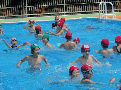 昨日プール開きを行いました。今日から早速プールでの授業開始です。