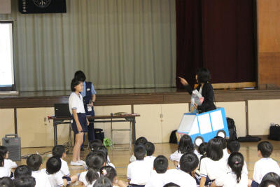 昨日、県警から「あおぞら」の方々をお招きし、防犯教室を実施しました。低・中学年は不審者等から身を守るための対応の仕方、高学年にはSNSの正しい扱い方や事故防止のために知らなければいけないことについて、御指導いただきました。