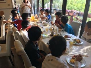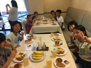 さわやかな朝です。焼きたてのパンはとっても美味しいです。今日は林間学校最終日です。楽しく安全に気をつけて1日頑張ります。