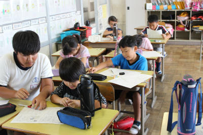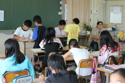 今日からサマースクールが始まりました。これまでの酷暑と比べるとだいぶ過ごしやすい気温だったのでよかったです。保護者や中学生など、多くの学習ボランティアの皆さんに御協力いただきました。ありがとうございました。
