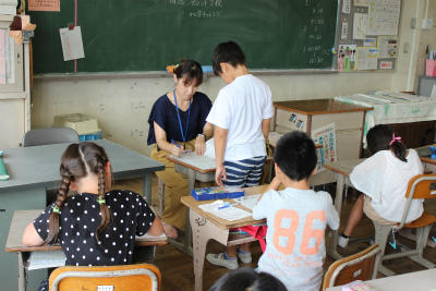 サマースクールは2日目。今日もたくさんの子どもたちが登校し、学習に、水泳に頑張りました。今日もボランティアのみなさんに御協力いただきました。