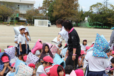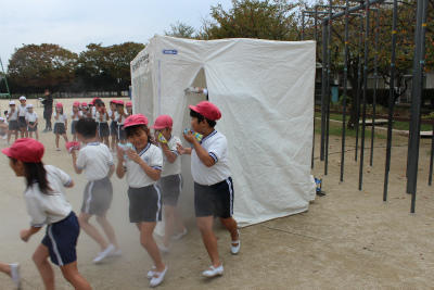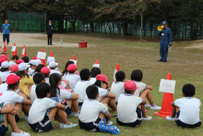 校庭に避難の後、消防署員の方から御指導いただき、さらに初期消火訓練と煙体験を行いました。御指導くださった消防署の皆さん、ありがとうございました。