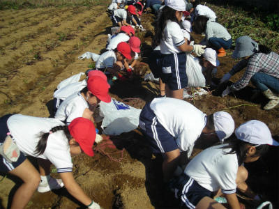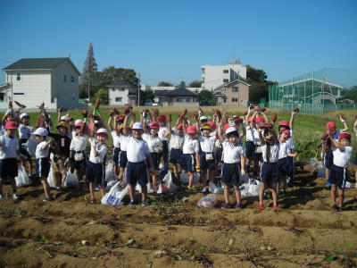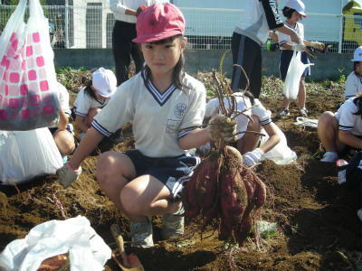 1年生から3年生が、さつまいもを収穫しました。春に植えたサツマイモの苗が、立派なサツマイモに生長していました。