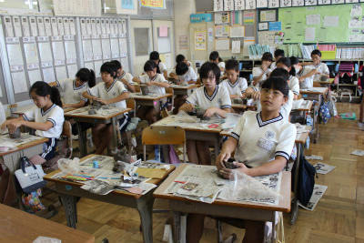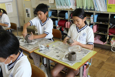6年生が「陶芸教室」で、マグカップや花瓶、小物入れなど、思い思いの作品作りに挑戦しました。また、5年生では家庭科のミシン実習で、エプロンづくりを行いました。それぞれ、指導者やボランティアの皆様にサポートしていただきました。ありがとうございました。
