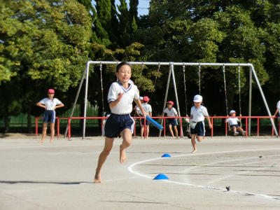 先日は女子の予選を行いました。今日は男子の予選です。昼休みの校庭が大いに盛り上がりました。
