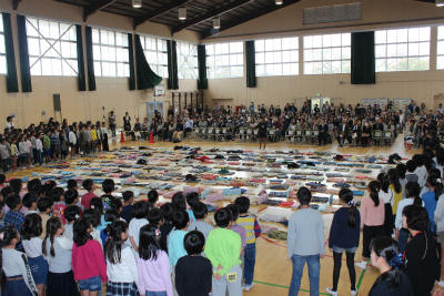 今回は、実施することをいっさい子どもたちには伝えず、子どもたちがそれぞれの場所に移動する清掃の時間に行いました。