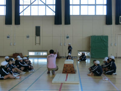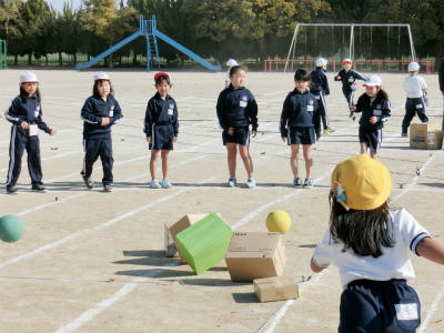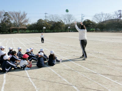 登校後、着替えてすぐに校庭に出ます。一運動では、クラス毎に運動に取り組んでいます。