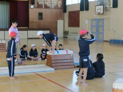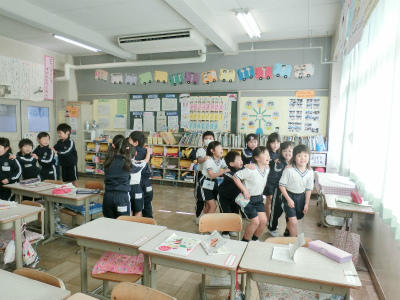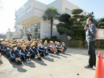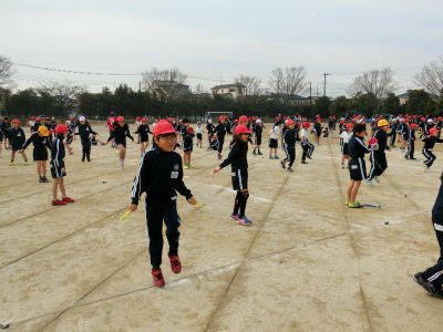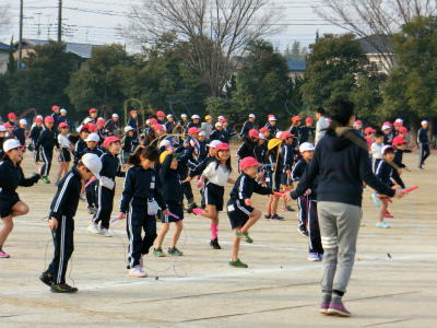 今日の朝は体育朝会、底冷えのする中でも小渕っ子は元気です。