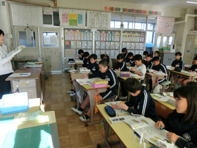 4年生は、社会の授業で、埼玉に関する情報収集です。埼玉の特産物、埼玉の銘菓、学校の数等々、インターネットを使い、それぞれの視点で検索し、分かったことをワークシートに記入していきます。