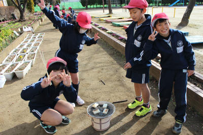 今日は、先日の社会科見学に続いて、「七輪」を体験、お餅を焼いてみました。