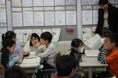 今日は、校内研修で、授業研究会を行いました。授業を行ったのは2年1組。周りに先生がたくさんいる中、子どもたちは一生懸命学習に取り組みました。