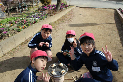 今日は、先日の社会科見学に続いて、「七輪」を体験、お餅を焼いてみました。