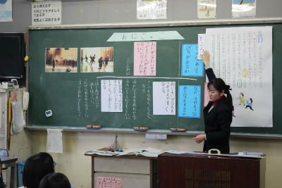 今日は、校内研修で、授業研究会を行いました。授業を行ったのは2年1組。周りに先生がたくさんいる中、子どもたちは一生懸命学習に取り組みました。