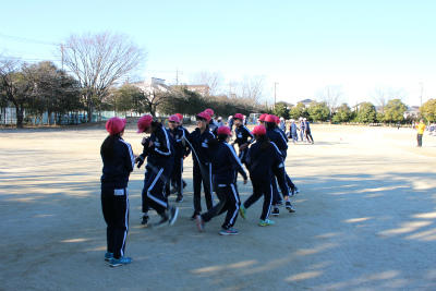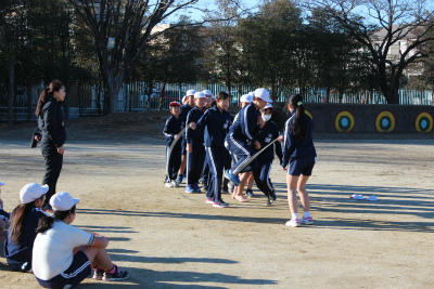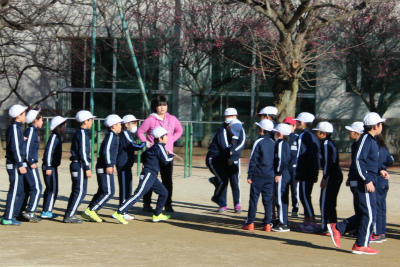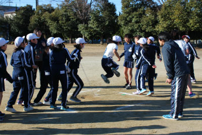 高学年は7分間、中学年は5分間、低学年は3分間、前ふつう跳びを一回旋一跳躍で跳びます。一回も引っかからないで跳ぶのは、簡単なようでなかなか難しいです。普段から練習していないと、なかなか続きません。