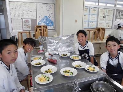 朝のおかず作りに挑戦です。家庭科の学習が2年目となり、子どもたちもだいぶ要領が良くなってきました。おいしそうな朝食のメニューが作られました。