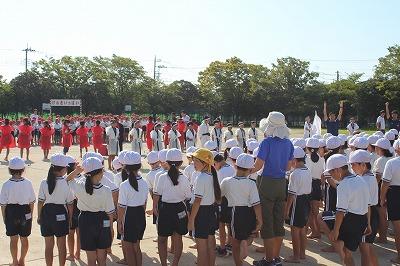 低学年、中学年、高学年ブロックごとに行います。小渕っ子も教員も、元気いっぱいに練習しています。