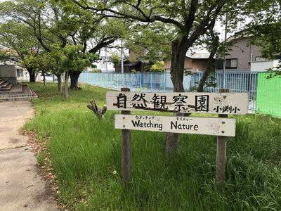 学校の敷地内では、たくさんのタンポポがきれいに咲いています。一部は綿毛なって風に舞うタンポポもあります。
