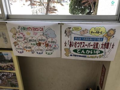 子供たちが通る廊下には、きれいな掲示物が貼られています。学校再開後には、ぜひご覧になってください。