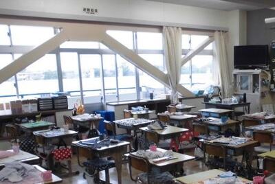 ( ↓ ある教室の4時間目です。子供たちは、体育館で体育なので教室にはいません。机の上は給食の用意がしてあります。体育から戻ったら、すぐ給食にとりかかれるように、3時間目の休み時間に給食の準備をしてから4時間目の体育に向かいました。)