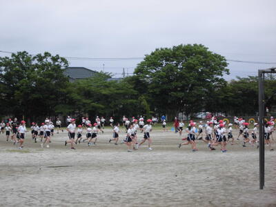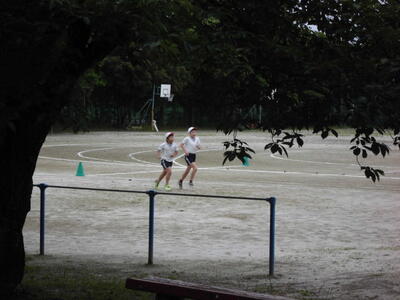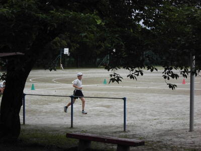 ( ↓ 登校して、準備ができた磁土が校庭に出て自主的に走り始めています。)