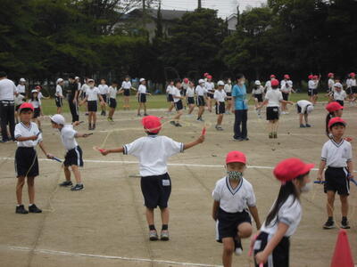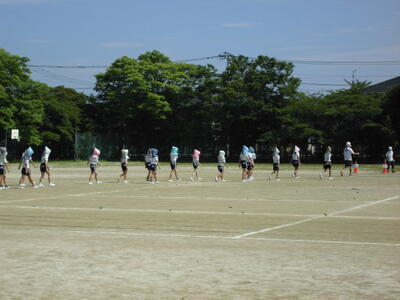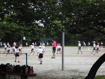 今週の水曜日から始まった、朝の「一運動(いちうんどう)」(登校後に校庭に出て運動に取り組む活動です)。昨日は雨でできなかったのですが、本日は、今年度二回目の活動です。