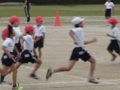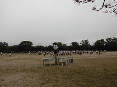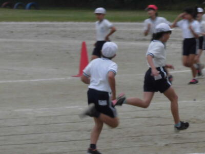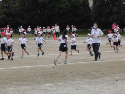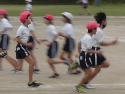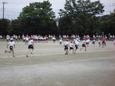 ( ↓ 後半は、リズムに合わせて、8秒間走です。みな、真剣に走っています。)