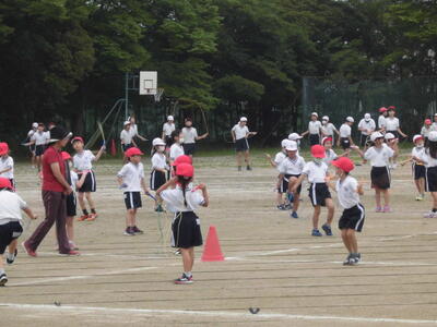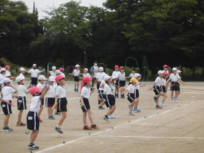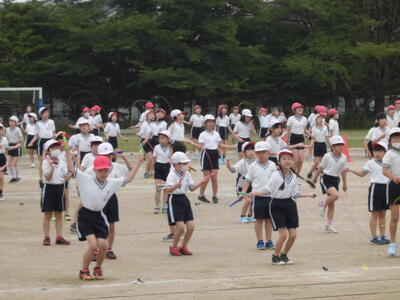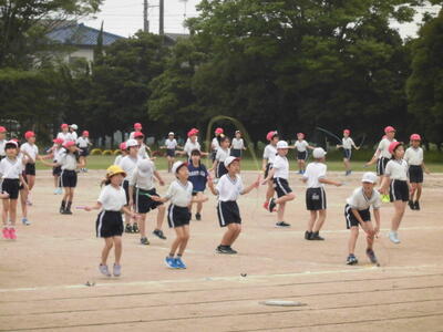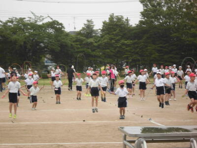 ( ↓ 前半は、縄跳びで体を動かしました。)