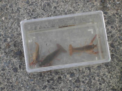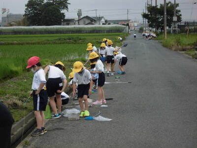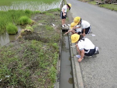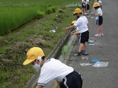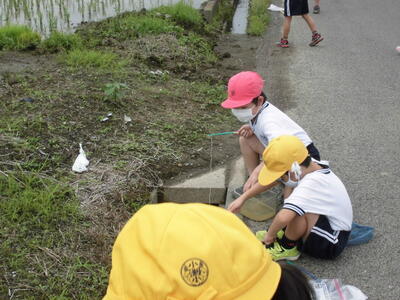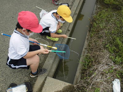 昨日、2年生が学校近くの用水路にザリガニつりに行ってきました。水の中に、わりばしの釣り竿から糸をたらして「つれるかなぁ」と不安げに始めましたが、開始から間もなく、次々とザリガニがつれ始めました。