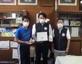ライオンズクラブ様より、学校に消毒液を寄贈していただきました。学校を代表して校長先生が受け取りました。学校の安全のため、子供たちの健康のため、ありがたく使わせていただきます。