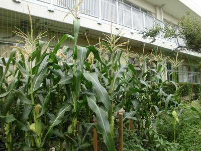 本校の敷地内でも、昨年、棚から植えたドングリが育っています。このドングリも新たな森の現地へ移して、植樹をする予定です。