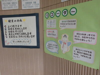 ( ↓ 授業の約束や音楽上達のための情報が、常に掲示されています。)